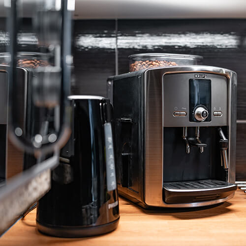 Przygotuj kawę do termosu lub śniadania. W kuchni mamy ekspres i świeżą kawę.